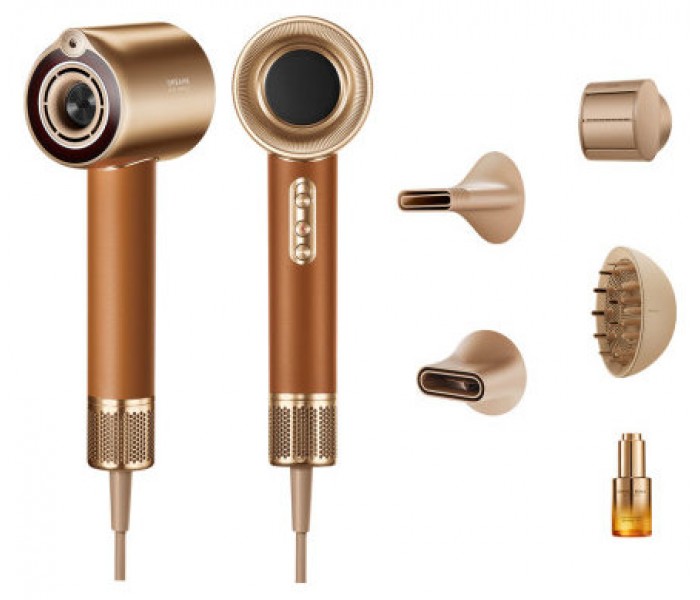 Dreame Miracle Pro. Velocidad del motor: 130000 RPM, Velocidad del aire: 70 m/s, Nivel de ruido: 58 dB. Color del producto: Oro, Coloración de superficie: Monocromo, Tipo de visualizador: LCD. Potencia: 1600 W, Voltaje de entrada AC: 220 - 240 V, Frecuencia de entrada AC: 50/60 Hz. Ancho: 82 mm, Profundidad: 263 mm, Altura: 86 mm. Cantidad por paquete: 1 pieza(s)