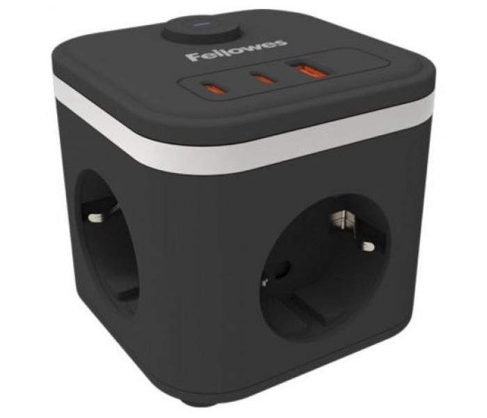 - Su forma cúbica reduce la acumulación de enchufes y deja más espacio para los dispositivos.