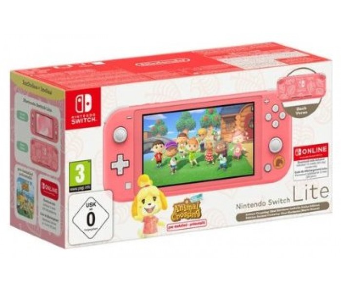 CONSOLA NINTENDO SWITCH LITE CORAL ANIMAL INCLUYE JUEGO ANIMAL CROSSING NEW HORIZONS