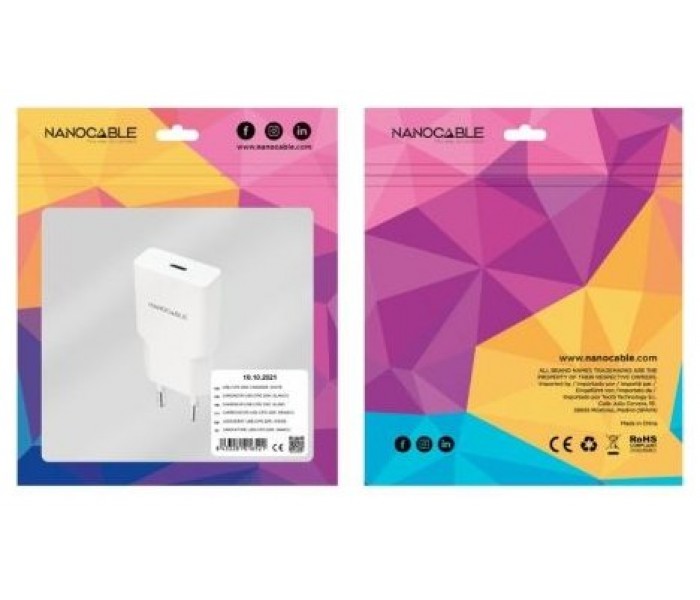 Cargador de Pared Nanocable 10.10.2028/ 1xUSB Tipo-C/ 1xUSB Macho/ 30W/ BlancoCargador USB-C/PD 30W ..