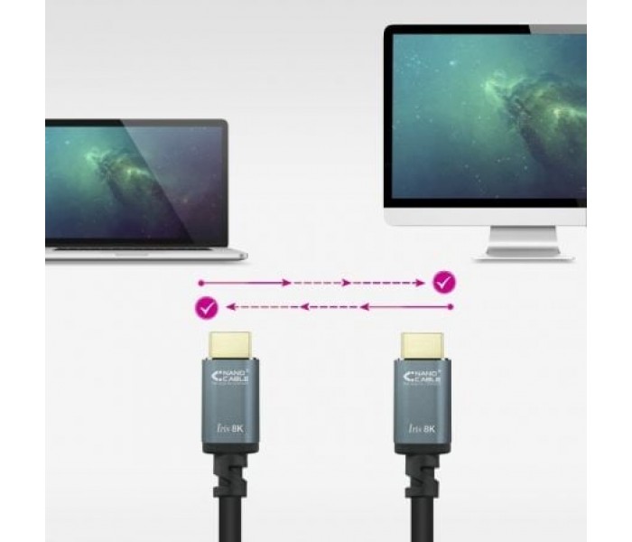 Disfruta viendo una buena película o ese videojuego que tanto te gusta y eleva la experiencia a la más alta definición.. Alcanza un ancho de banda de 48Gbps y una resolución de vídeo de 60 Hz en 8K y 120Hz en 4K.. El cable dispone de soporte eARC y compatibilidad HDR con los que podrás conseguir un sonido de cine y una imagen de película.. Totalmente Plug & Play, únicamente tendrás que conectar el cable del dispositivo a la pantalla. Además, es bidireccional, la señal de audio y vídeo fluye en ambos sentidos.. . Especificaciones:. . Cable HDMI 2.1 con conector tipo A macho en ambos extremos. Conectores de aluminio de alta calidad blindados en oro . Soporta resoluciones de vídeo de hasta 8K@60Hz y 4K@120Hz. Ancho de banda hasta 48Gbps. Soporta eARC (mejora respecto ARC). Compatible con HDR (High Dynamic Range). Permite 3D. Compatible con hasta 32 canales de audio digital no comprimido . Múltiple apantallamiento para la máxima reducción de posibles interferencias. Retrocompatible con las especificaciones HDMI anteriores. Longitud: 5 m. Color: Negro. Normativas: RoHS. Test de Funcionamiento: 100% testado