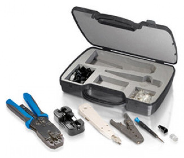 KIT DE HERRAMIENTAS PROFESIONAL PARA REDES EQUIP 129504 - CRIMPADORA - CRIMPADORA IMPACTO - PELACABLES - DESTORNILLADOR - 20XCONECTORES RJ45 CAT6