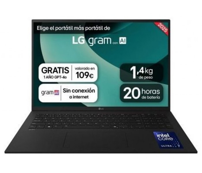 Portátil 17" LG gram - 17Z90T, Intel® Core™ Arrow Lake, 16 GB RAM, 1 TB SSD, Panel IPS WQXGA (2560x1600), Ligero 1,4 kg, 20 h, Negro