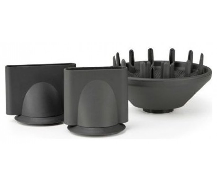 Incluye accesorios magnéticos que se acoplan fácilmente y permiten cambiar de estilo sin complicaciones. El difusor está pensado para aportar volumen y definir ondas o rizos, mientras que los dos concentradores de distinto tamaño ofrecen precisión en el alisado o en el moldeado de zonas específicas.