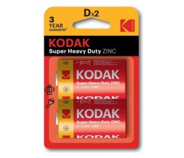 PILAS D LR20 KODAK EXTRA HEAVY DUTY ZINC PACK 2 UNIDADES 6000 mAh 1.5V (ecotasas incluidas)