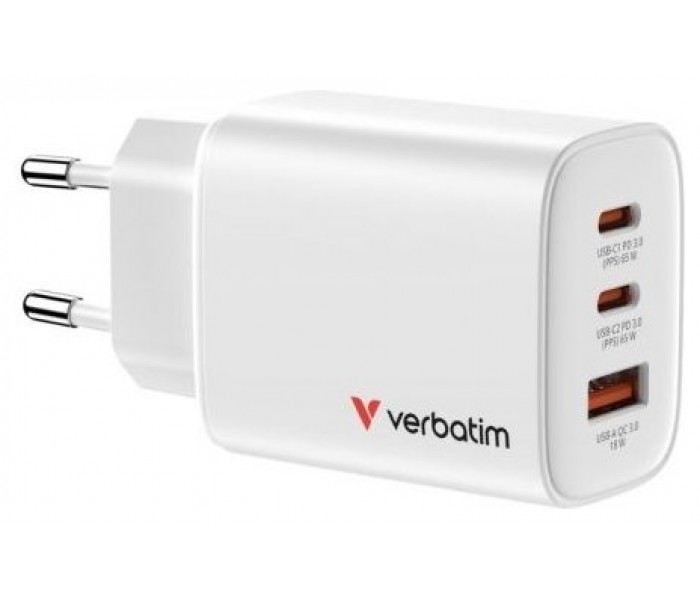 Cargador de Pared Universal GaN para Viaje Verbatim GNC-65/ 2xUSB Tipo-C/ 1xUSB/ 65WCargador de pare..