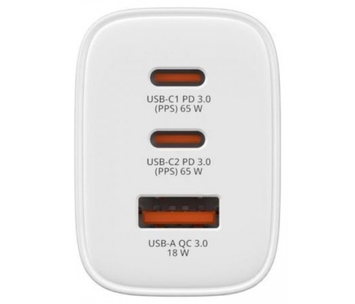 CARGADOR PARED/VIAJE 2xUSB-C +USB-A GaN 65W PD BLANCO SUBBLIM (Espera 4 dias)
