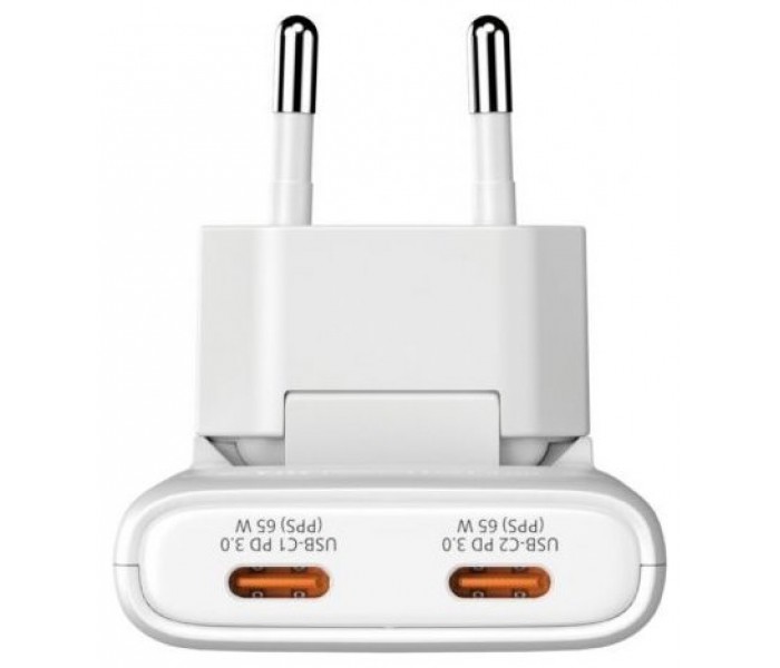 Cargador GaN Fold "n" Go Enchufe UE de 65W y 2 puertos - Blanco