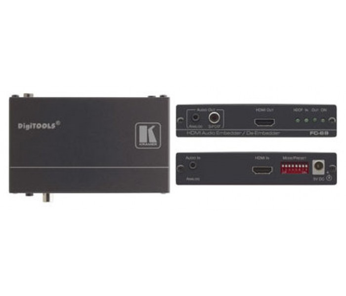 Kramer Electronics FC-69. Ancho de banda: 8,91 Gbit/s. Color del producto: Negro, Material de la carcasa: Aluminio, Certificación: HDMI, HDCP, CE, RoHs, WEEE. Interfaz de host: HDMI. Voltaje de operación: 5 V, Corriente de operación: 0,5 A. Ancho: 120 mm, Profundidad: 71,5 mm, Altura: 24,4 mm