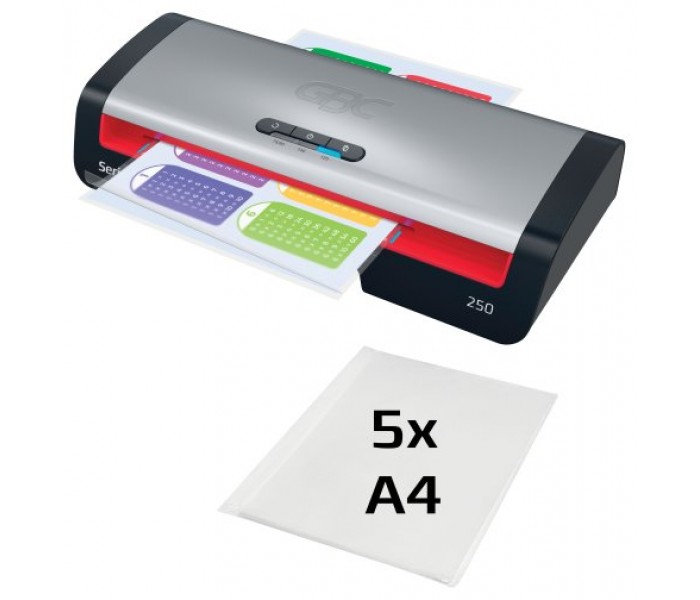 SET PLASTIFICADORA INSPIRE+ NEGRA A4 + CIZALLA + CORTADOR ESQUINAS GBC 4410036Plastificadora Inspire..