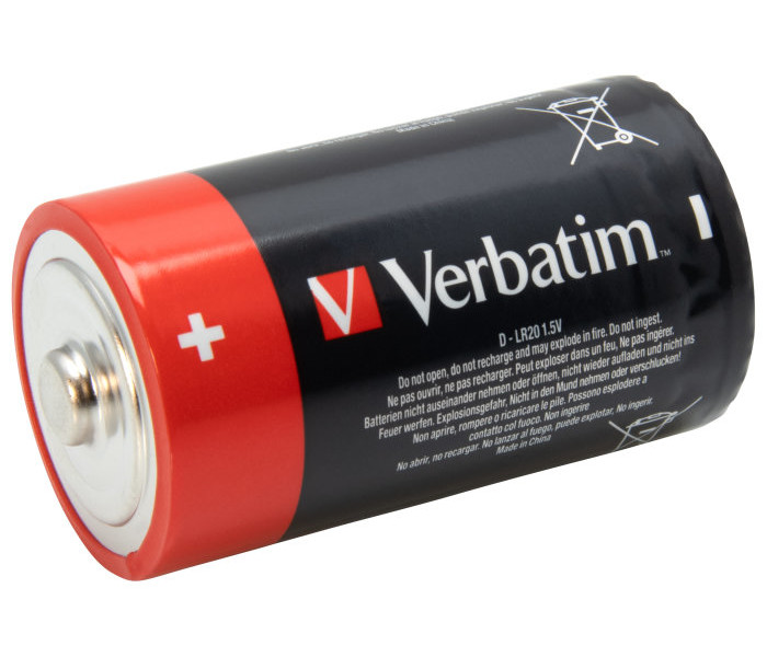 El modelo de pilas D de Verbatim es, al igual que el modelo C, ideal para linternas y flash. Asimismo, se recomienda para aumentar el tiempo de rendimiento de los equipos estéreo portátiles de gran tamaño.