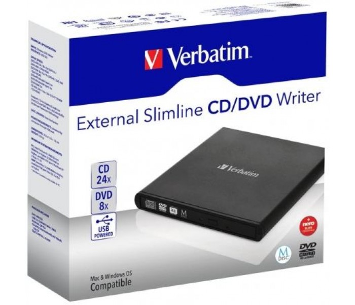 - Grabadora externa de CD / DVD USB 2.0 slimline compacta y ligera.