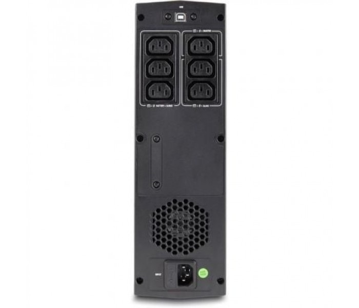 | Salida | - Tensión nominal: 230 V - Precisión tensión (modo batería): ±10% - Potencia (VA/W): 1650 / 900 - Forma de onda (modo batería): Pseudosenoidal - Frecuencia: 50 / 60 Hz (misma que la entrada) - Precisión frecuencia (modo batería): ±1Hz - Tiempo de transferencia: 10ms - Compatibilidad cargas APFC - Tipo de tomas: IEC - Nº salidas: 6 |