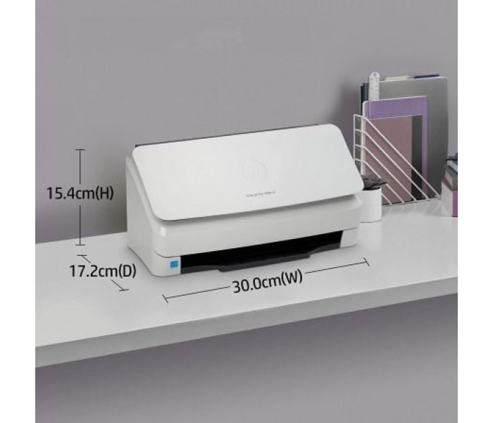 Libere espacio para trabajar. Este escáner HP ScanJet Pro es pequeño y delgado, con un diseño perfecto para el escritorio.