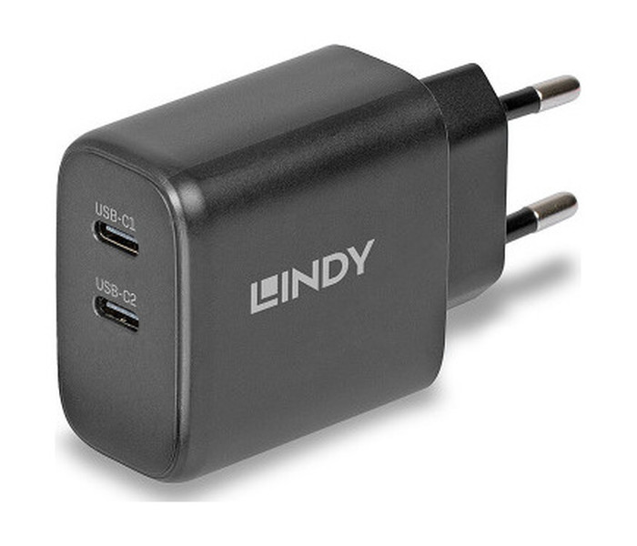 Lindy 73438. Tipo de cargador: Interior, Alimentación: Corriente alterna, Compatibilidad del cargador: Universal. Voltaje de entrada: 100 - 240 V, Voltaje de salida máximo: 20 V. Número de puertos USB Tipo C: 2, Carga rápida, Funciones de protección de poder: Sobreintensidad, Sobrevoltaje, Sobrecalentamiento, Cortocircuito. Color del producto: Negro