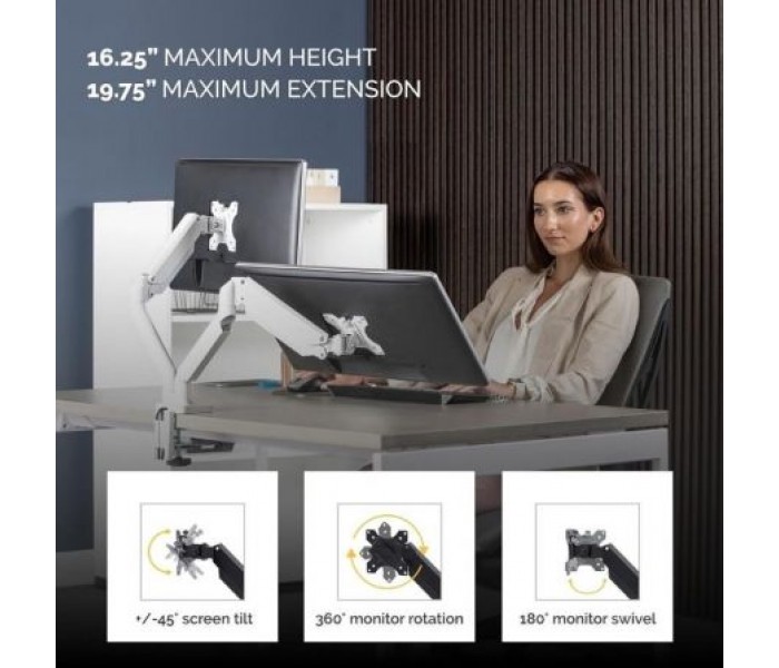 compatibilidad con interfaz de montaje (max): 100 x 100 mm. ajustes de altura - ángulo de inclinación: - 45 - 45°. color del producto: blanco