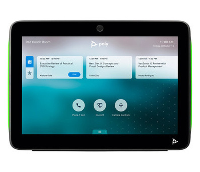 El panel de control táctil Poly TC10 incrementa la productividad de las reuniones y permite que los usuarios reserven fácilmente el uso de espacios de trabajo y salas de conferencias.