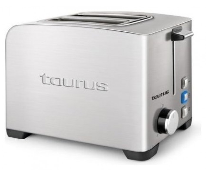 Tostador de acero inoxidable de toque frío de 850 W. Dos ranuras de anchura 39 mm. Tres funciones: descongelar, recalentar y cancelar. Iluminación LED Regulador del tiempo de tostado. Bandeja recogemigas. Alojamiento para el cable.