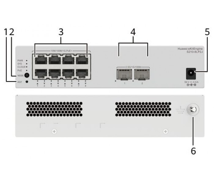 HUAWEI S210-8LP2J (8*10/100/1000BASE-T PORTS (32W POE+), 2*2.5GE SFP PORTS, WITH 1*AC POWER ADAPTER, FANLESS)"