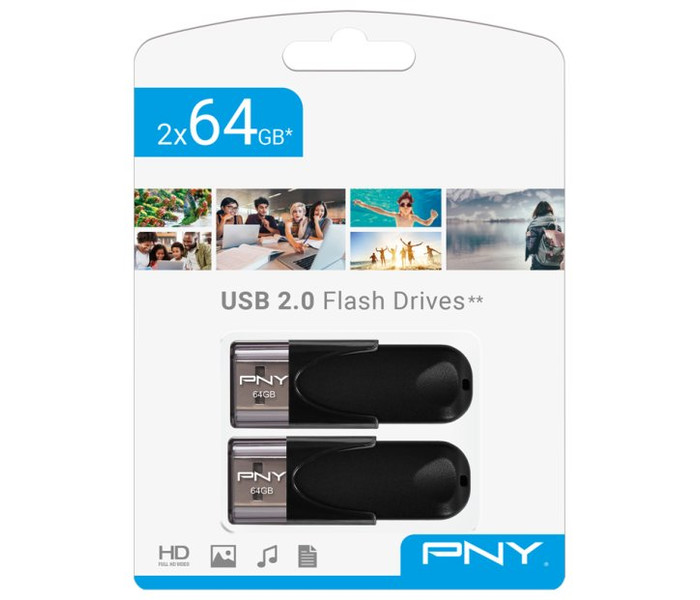 MEMORIA USB 2.0 PNY 2x64GB ATTACHE 4 TWIN PACK NEGRO