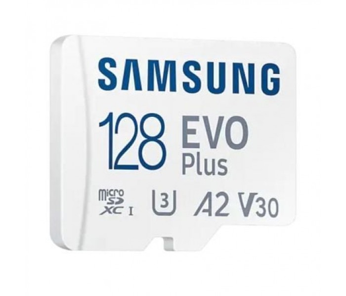 Especificaciones:. . Características generales. . Tipo de producto: Tarjeta de memoria microSDXC. Familia: EVO PLUS. Aplicación: Teléfono móvil, smartphone, tablet. Capacidad: 128 GB, (1 GB = 1 billón de bytes) * La capacidad de almacenamiento real puede ser menor que la capacidad indicada en la etiqueta. Parte del almacenamiento se puede utilizar para archivos del sistema y otros fines de control de almacenamiento.. Interfaz: UHS-I, compatible con interfaz UHS. Dimensiones: 15x11x1 mm. Peso: Aprox. 0.25g. Accesorios: Adaptador SD. . Rendimiento. . Velocidad: Lectura: hasta 160 MB/s Escritura: menor que la velocidad de lectura *La velocidad de lectura/escritura requiere dispositivos compatibles capaces de alcanzar tales velocidades y puede variar entre diferentes dispositivos anfitriones y condiciones de prueba. *Para productos incompatibles con la interfaz UHS-I, las velocidades pueden variar según las diferentes condiciones de la interfaz.. Velocidad: U3, V30, A2. . Entorno. . Voltaje: 2.7~3.6V. Temperatura de almacenamiento: -40 a 85. Temperatura: -25 a 85. . Certificación. . EMC: CE(UKCA)/FCC/VCCI/RCM
