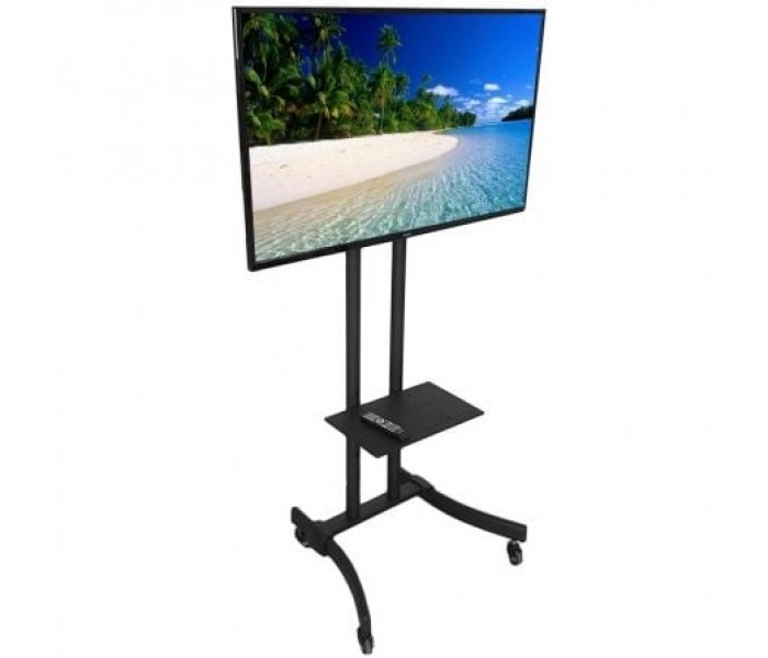 Características Técnicas:. • Peso maximo: 40Kg.. • Pulgadas: 30" a 55".. • Vesa Maximo: 600x400. . • Fácil instalación.. • Incorpora balda para colocar equipos audiovisuales.. • Fabricado en materiales de alta calidad.. • Certificado de calidad SGS.. • Color: Negro. • Garantía: 2 años. Contenido del embalaje:. • Soporte de Suelo Móvil para TV. • Hoja de instrucciones. • Tornillos para sujeción