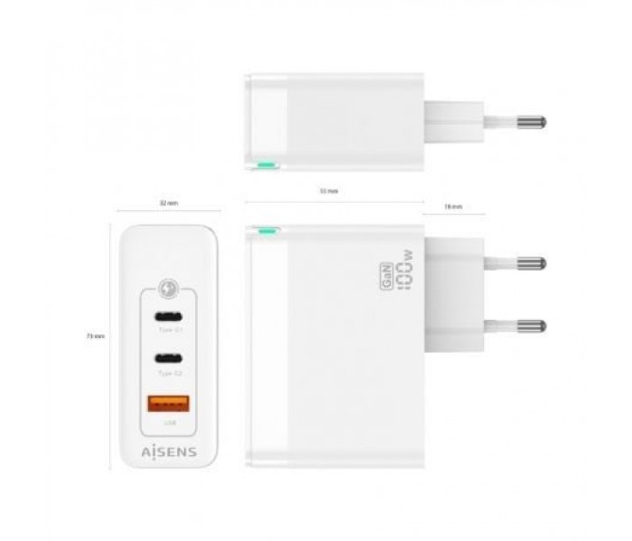 Cargador de Pared GaN Aisens ASCH-65W3P007-W/ 2xUSB Tipo-C/ 1x USB/ 65WCargador Gan de Pared Aisens ..