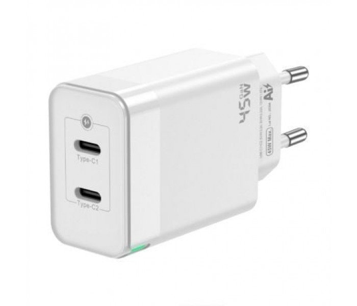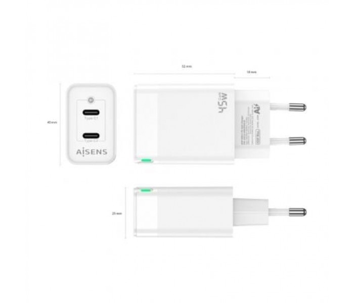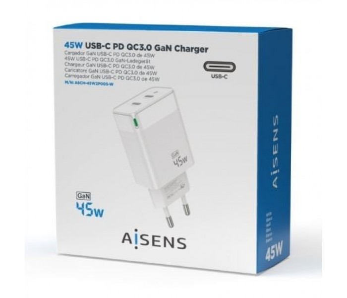 CARGADOR GaN 45W 2xUSB-C PD3.0 QC4.0 BLANCO AISENS