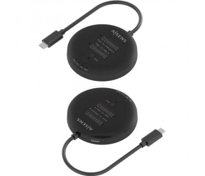 AISENS - ESTACION DE DOCKING DE DOBLE BAHIA NVMe A USB 3.2 GEN2x2, CLONE, NEGRO