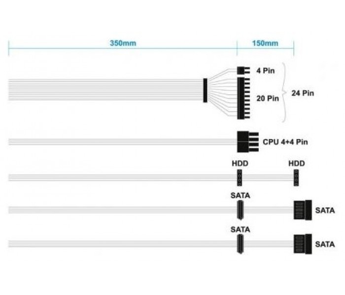- 1 conector ATX (20 + 4 pines) 350mm