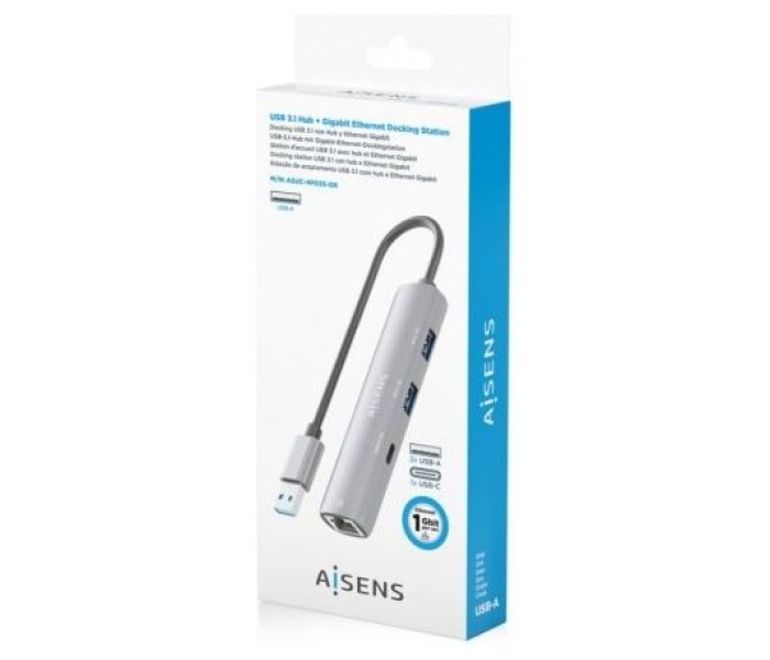 ASUC-4P035-GR – USB3.0 Dock USB-A a Ethernet Gigabit + HUB 1xUSB-C+2xUSB-A, GRIS, 15cm