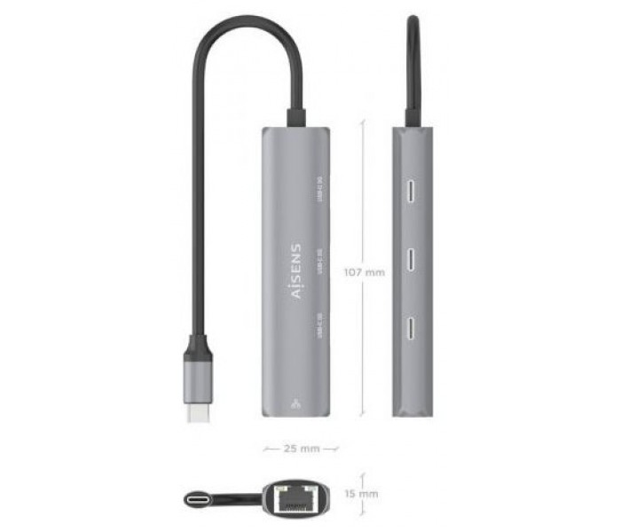 Hub USB Tipo-C Aisens ASUC-4P038-GR/ 3xUSB/ 1xRJ45/ GrisASUC-4P038-GR – Dock USB-C a Ethernet Gigabi..