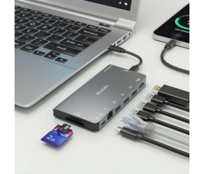 - AISENS - USB-C DOCK 8 EN 1, USB-C A 1xHDMI, 1xRJ45, 3xUSB-A, 1xUSB-C DATOS+PD, 1xSD, 1xMICRO SD, GRIS, 10CM