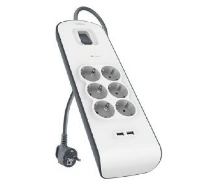 REGLETA ALIMENTACION BELKIN BSV604VF2M-V2 PROTECCIÓN CONTRA SOBRET 6 TOMAS + 2 USB- A 2,4 BOTON