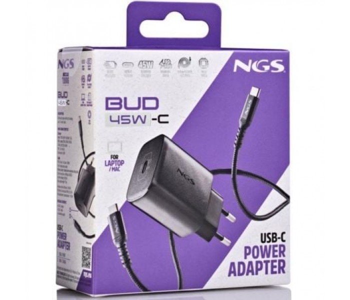 - Cargador de pared con 1 salida USB-C (PD & PPS) de 45W de potencia máxima.