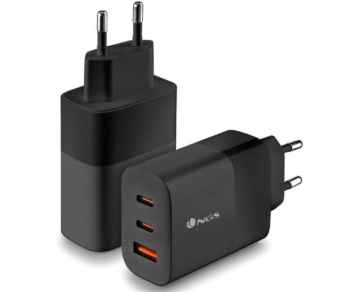 Cargador de pared con 2 salidas USB-C (PD & PPS) y una salida USB-A QC 3.0 de 65W de potencia máxima para cargar dispositivos de manera rápida y eficiente.. Fabricado en GaN y materiales ignífugos es el cargador ideal para smarphones, tablets y ordenadores portátiles.. Es un cargador inteligente que permitirá una carga más eficiente de la batería del dispositivo alargando la vida del mismo.. Su diseño con 3 puertos permite cargar 3 dispositivos simultáneamente de forma segura y estable minimizando el tiempo de espera. . Compatible con todos los móviles y dispositivos de carga USB.. Diseño compacto y portátil.. Potencia de entrada: 100-240V, 50/60Hz, 1,5A. Salida:. . USB-C1: PD 3.0. 5V-3A, 9V-3A, 12V-3A, 15V-3A, 20V-3.25A (65W Max.). PPS: 3.3-21V 3A (65W). USB-C2: 5V-3A, 9V-2.2A, 12V-1.67A (20W). USB-A: QC 3.0. 5V-3A, 9V-2A, 12V-1.5A (18W). USB-C1+USB-C2: PD 45W+20W. USB-C1+USB-A: 45W+18W. USB-C2+USB-A: 7.5W+7.5W. USB-C1+USB-C2+USB-A: 45W+7.5W+7.5W
