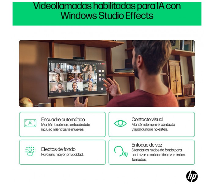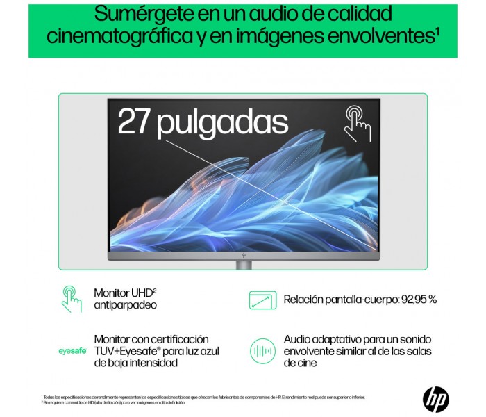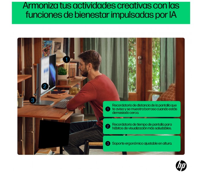 Asume tareas exigentes a la velocidad del rayo gracias al ordenador de sobremesa multifunción HP OmniStudio X de 27 pulgadas que incorpora tecnología IA y un potente procesador Intel Core™ Ultra[1]. Disfruta de imágenes inmersivas, sonido de calidad cinematográfica y funciones de comodidad y bienestar basadas en IA que te ayudarán a afrontar el día a tu manera.