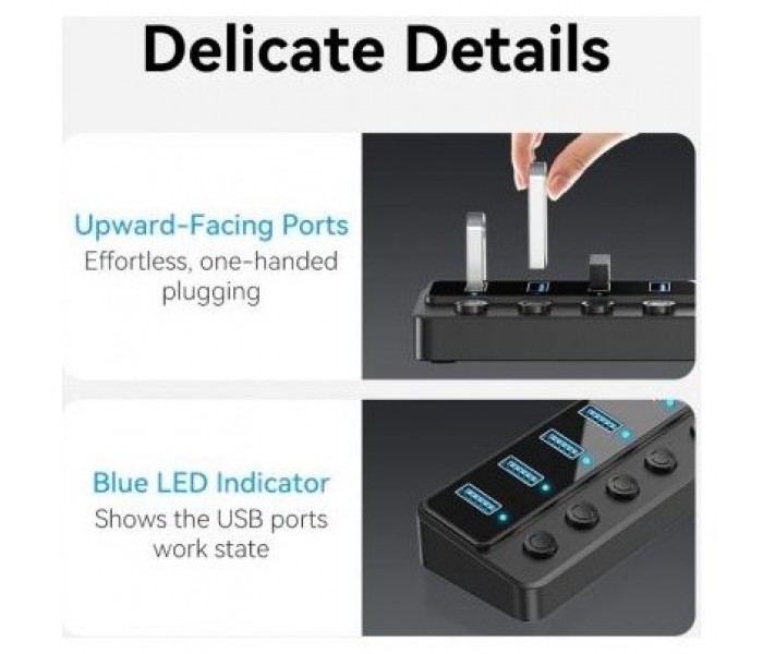 Hub USB 2.0 Vention CHMBD/ 4xUSBHub USB 2.0 de alta velocidad Expande 4 puertos USB para su ordenad..