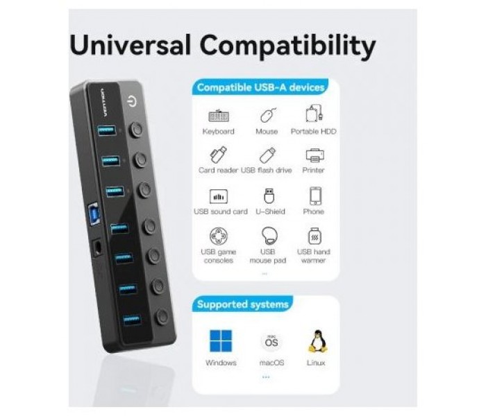 Hub USB 3.0 Vention CHXB0-EU/ 7xUSB