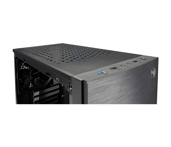Diseño elegante con acabado en aluminio pulido y una excelente capacidad de refrigeración gracias a sus rejillas frontal, superior y laterales, su ventilador ultra silencioso de 120 mm incluido y su compartimento especial para la PSU.