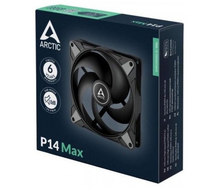 Como característica especial, el P14 Max está equipado con el rodamiento hidrodinámico de eficacia probada de ARCTIC. Esto permite el funcionamiento prácticamente silencioso a bajas velocidades que los clientes han estado solicitando. A máxima velocidad, se garantiza un rendimiento excepcional. Aunque estos rodamientos tienden a desgastarse, ARCTIC no compromete la durabilidad y ofrece una garantía de 6 años.