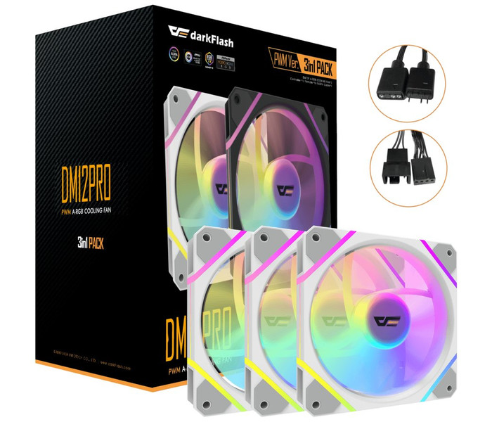 KIT 3 VENTILADORES AUXILIAR DM-12 120 PRO A-RGB BLANCO DARKFLASH (Espera 4 dias)