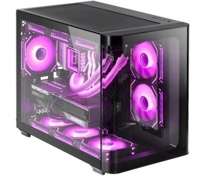 Minitorre custom showcase con estructura MicroATX, ventana completa lateral y ventana frontal con bordes curvados de cristal templado.. Estructura de doble cámara con gestión de cableado, soporte total para refrigeraciones líquidas de hasta 360mm y capacidad hasta 9 ventiladores.. Especificaciones. . Tipo. Minitorre. Diseño. Ventana lateral completa y frontal curva de cristal templado. Placas base. MicroATX / Mini-ITX. Ventiladores. Superior: 3x 120mm o 2x 140mm/ Interior: 2x 120mm o 2x 140mm /. Inferior: 3x 120mm / Trasero: 1x 120mm. Refrigeración líquida. Superior: 360, 280, 240, 140, 120mm / Interior: 240, 140, 120mm /. Inferior: 360, 240, 120mm / Trasero: 120mm. Bahías. 3x 2.5"" SSD / 2 x 3.5"" HDD. Ranuras de expansión. 5-445mm. VGA máxima. 150mm . VGA anchura máxima. 160mm . Puerto I/O. USB3.0 x1 / USB2.0 x2 / HD Audio + Mic (mezclado) . Extra. Diseño de doble cámara y sistema de gestión de cableado. Dimensiones. 475x285x370mm / 5.9Kg