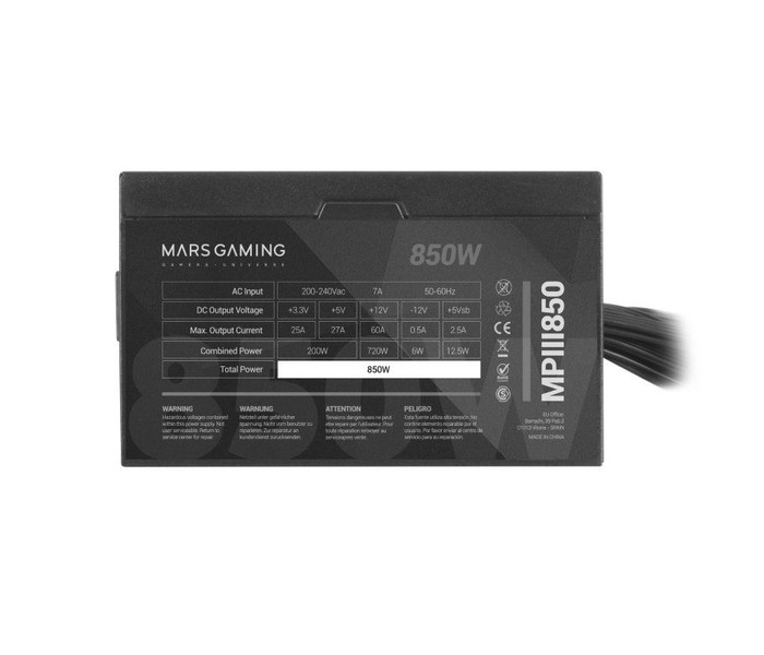 FUENTE DE ALIMENTACIÓN MPIII8505 años de garantía gracias a la última tecnología de fabricación SMD de alta precisión, PCB de doble capa de fibra de vidrio y componentes grado-A de fiabilidad total. Silencio máximo con la nueva tecnología AI-RPM. 99% eficiencia DIGITAL APFC, 85% de eficiencia eléctrica, cables planos negros extra-largos y todos los sistemas de protección y seguridad incluidos.5 AÑOS DE GARANTÍA. SEGURIDAD TOTAL. SMDGracias a la última tecnología de fabricación SMD de alta precisión y al uso de componentes grado-A de máxima calidad y fiabilidad, la MPIII850 ofrece una garantía extendida de funcionamiento de 5 años. Su fabricación ultra estable SMD sobre un PCB de doble capa de fibra de vidrio, asegura un rendimiento y fiabilidad extremos ante cualquier circunstancia. Además, la MPIII850 integra los más avanzados y completos sistemas de seguridad electrónicos: OVP (protección exceso voltaje), UVP (protección déficit voltaje), OCP (protección exceso eléctrico), OPP (protección exceso potencia) y SCP EXTENDED (protección total cortocircuitos internos y externos). La MPIII850 ha sido desarrollada en Europa y fabricada bajo los más estrictos estándares europeos.SILENCIO ABSOLUTO. AI-RPM Y FDBEquipada con la última tecnología en control de ventiladores AI-RPM ideal para garantizar un funcionamiento sin ruido, la MPIII850 cuenta con control térmico inteligente de última generación basado en algoritmos avanzados y sistemas de control multinivel para mantener el ventilador al mínimo. Además, la MPIII850 cuenta con un ventilador de grado industrial con rodamiento de fluido dinámico y motor extragrande para maximizar su estabilidad. Toda la tecnología disponible para asegurar el mínimo ruido y la máxima eficiencia y durabilidad.EFICIENCIA PROFESIONALCon una eficiencia del 99% en el sistema DIGITAL APFC y un 85% de eficiencia eléctrica lograrás un perfecto equilibrio entre eficiencia y consumo. Además, su tecnología de raíl único +12v te permitirá instalar el hardware más exigente.DISEÑO DE CABLES OPTIMIZADOLos cables de la MPIII850 son planos, negros y extralargos: una combinación de prestaciones que hacen su instalación no solo más fácil que nunca sino, además, totalmente versátil para cualquier montaje en cualquier tipo de caja. Construye el PC definitivo con una torre de gran tamaño y disfruta de tus partidas a lo grande.EMPAQUETADO DE ALTA PROTECCIÓN EPEPara asegurar que la fuente MPIII850 llegue en perfectas condiciones, está totalmente protegida por un empaquetado especial con sistema de absorción total de golpes.
