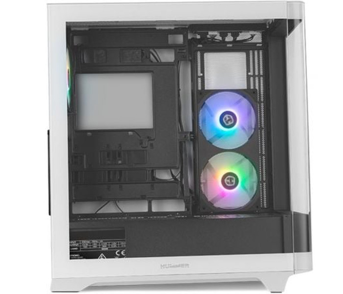 Hummer ETHER está disponible en tres colores: blanco, negro y una combinación de ambos. Su singular diseño, hace de esta caja Nox una delicia para aquellos setup más atrevidos, que valoran la estética sin renunciar al rendimiento. Su cristal templado curvo te ofrece un nuevo nivel de inmersión, al crear una ventana lateral panorámica que deja al descubierto su interior al completo.