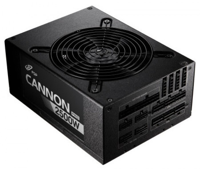FSP CANNON PRO(ATX3.1) 2500W. Potencia total: 2500 W, Voltaje de entrada AC: 200 - 240 V, Frecuencia de entrada AC: 50/60 Hz. Alimentador de energía para tarjeta madre: 20+4 pin ATX. Utilizar con: PC, Factor de forma de fuente de alimentación (PSU): ATX, Certificación 80 PLUS: 80 PLUS Platinum. Color del producto: Negro, Diámetro de ventilador: 13,5 cm, Número de ventiladores: 1 Ventilador(es). Cables incluidos: Peripheral (Molex)