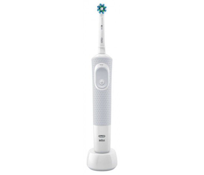 Oral-B Cepillo Dental Eléctrico Recargable Vitality 100 CrossAction Un cepillo eléctrico que ofrece una limpieza superior clínicamente probada comparado con un cepillo de dientes manual normal. El diseño del cabezal del cepillo CrossAction, inspirado en las herramientas de limpieza profesionales. Tecnología Con 7.600 rotaciones por minuto, el cepillo Vitality es significativamente más eficaz que un cepillo manual normal. Superiores resultados de limpieza, frente a los de un cepillo manual normal. Disfruta de una limpieza en profundidad con sus filamentos más anchos que barren más superficie dental que un cepillo manual normal. Eliminación de placa El diseño del cabezal del cepillo CrossAction, inspirado en las herramientas de limpieza profesionales, rodea cada diente con sus filamentos inclinados 16 grados, mientras que la acción de limpieza 2D oscila, y rota para eliminar más placa que un cepillo manual normal. Temporizador de 2 minutos Incorpora un temporizador e, para ayudarte a cumplir los 2 minutos recomendados de cepillado