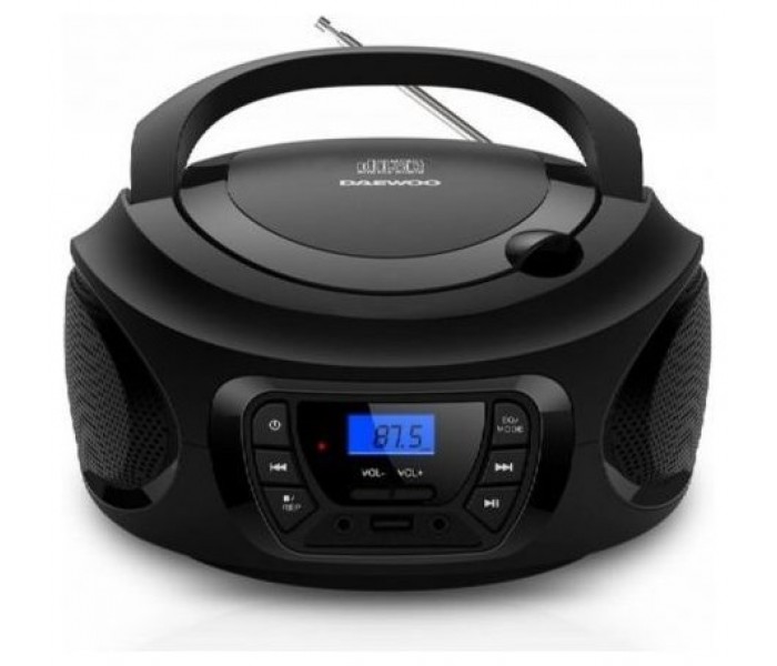 Daewoo DW3011 es una radio CD/FM tipo boombox con Bluetooth, USB, AUX y salida de auriculares, que integra 2×2 W en altavoces estéreo, ecualizador de 5 modos y pantalla LCD. Funciona a corriente AC o con 4 pilas C (LR14) para uso portátil.