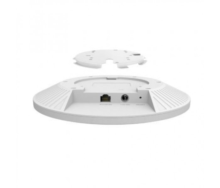 TP-Link Omada EAP683 UR. Rango máximo de transferencia de datos: 6000 Mbit/s, Velocidad máxima de transferencia de datos (2,4 GHz): 1148 Mbit/s, Velocidad máxima de transferencia de datos (5 GHz): 4804 Mbit/s. Algoritmos de seguridad soportados: HTTPS, SNMP, SNMPv2, SNMPv3, SSH, Características de identificador de conjunto de servicios (SSID, Service Set Identifier): Multiple SSIDs. Rango de voltaje DC: 12 V. Ubicación: Techo, Pared, Color del producto: Blanco. Tipo de antena: Interno, Tipo de dirección de la antena: Omni-direccional, Ganancia de la antena (max): 5 dBi