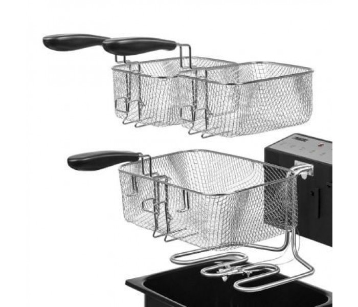 - Tres cestas incluidas para freír patatas y aperitivos o distintos tipos de tentempiés al mismo tiempo.